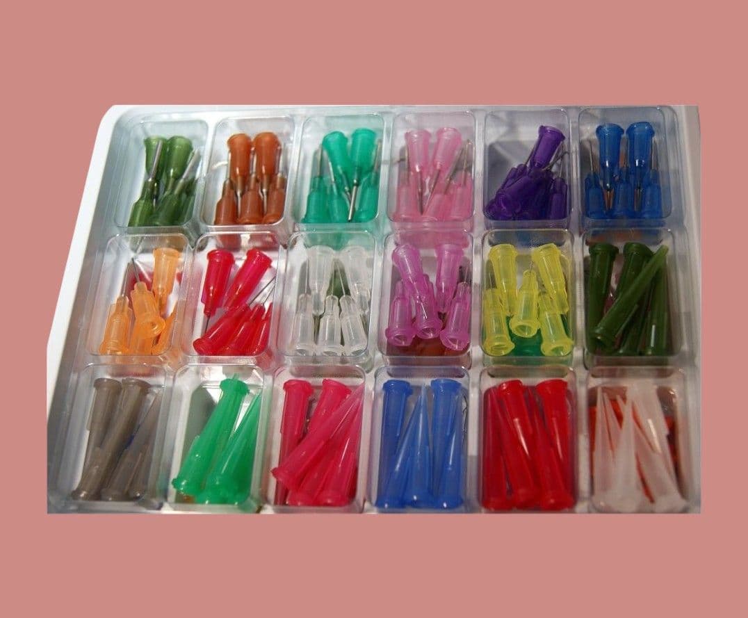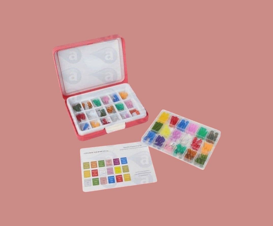 A useful tip selection kit containing 145 assorted tips from our precision AD range (0.5" long), a selection of 45° and 90° bend angled tips, all size tapered tips and sample tip caps. Dual level plastic box with info card for easy product identification.